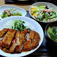 カツは業スーの冷凍を揚げました。彩り野菜カレーがとても美味しい!カロリーを控えるため野菜カレーだけでもリピートしたい。