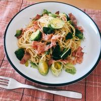 芽キャベツとカリカリベーコンのパスタ レシピ・作り方