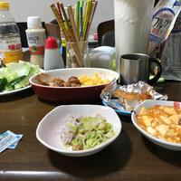 献立表を作成してミートボール、簡単レンジもやしキャベツナムルにシィチキンと豚ばら肉しゃぶシャブして加えました。麻婆豆腐もピリ辛に主人の好みの味にアレンジして出来ました。🤗💞🍀🌸❗️🙆🏻♀️