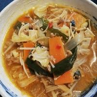 野菜もとれて暖まるし何より美味しくて最高。ニラとかもやし無かったんで適当に野菜入れました!何でも合う気がする