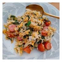 ウインナーの代わりにベーコンやハムでも美味しいです。 卵には砂糖を加えて甘めにしていますが、甘いのがお好きでない方は、砂糖の代わりに軽く塩コショウしてください。 ご飯が冷たいときは、電子レンジで温めてから炒めるほうがほぐれやすいです。