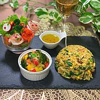 玉ねぎがなかったので、かわりにネギ多めで作りました!卵に入れる砂糖がおおすぎたかも。春菊消費するにはいいです!