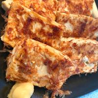 鰹節をつけた後はあまり触らず 触るときはゆっくりと優しく触って下さい。 ごま油はたっぷりの方が香りがでて美味しく召し上がれます。 焼く際、豆腐から水分が出てべちゃっとなるので水切りは必ず行ってください。