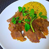 黒毛和牛のミスジ肉やトモサンカクを使うと、お肉がとろけるような食感で格別な一品に。バターで炒めたガーリックライスにクレソンを加えることで、爽やかな辛みと香りが広がります。玉ねぎソースはバルサミコ酢を使うと、コクと酸味のバランスが抜群。醤油は控えめにするのがポイントです。ステーキ屋さんのような本格的な味わいで、家族からも大好評でした。
