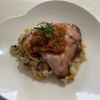 玉ねぎソースは、醤油はレシピの3分の2、酢はバルサミコ酢を分量通りに入れました。