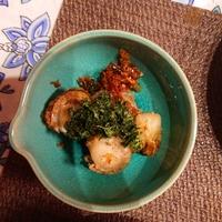 殻付きホタテが7枚で700円以下だったので購入。ベランダ菜園のパセリのソースと大葉を敷いて。パセリソースに入れたナッツがアクセントになって美味しかったです。