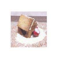 - 8 煙突や壁にデコレーションをします。屋根にはチョコレートを塗り、グラニュー糖を振って雪を表現します。