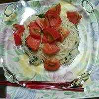 いつものそうめんをイタリアンにアレンジしたレシピです。 さっぱりとおいしいトマトとオリーブオイルのイタリア風の味付けし、バジルを混ぜ合わせたそうめんといただきます。 休日ののんびりブランチにもおすすめです。
