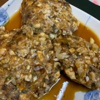 - 6 フライパンをキッチンペーパーで綺麗にし、2の長ねぎとソースの材料を加え、ひと煮立ちしたら5にかけて完成です。