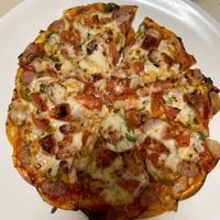 玉ねぎ、ウインナー、ベーコンは、フライパンで炒めて、ピーマンは、レンジで20秒くらいチンしてからトッピング!