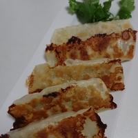 - 5 中火で熱したフライパンにサラダ油をひき、4の閉じ口を上にして並べて焼きます。