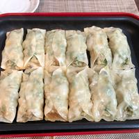 エビがプリプリで、鶏ひき肉、パクチーの相性も良くレモンをかけて美味しくいただきました♡包むのも簡単で、棒餃子ってアリだなと思いました(笑)