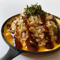 オープンオムライスのレシピのご紹介です。お好み焼きソースの甘みとコクが、ポン酢の酸味とよく合います。通常のオムライスのように巻かないので、簡単にでき、スキレットで焼くのでオシャレさもあります。ぜひお試しください。