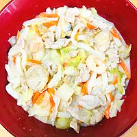 キャベツ→白菜に代用したら少し薄味になったので、鶏ガラスープの素とオイスターソース多めにし、黒コショウ最後にかけました。具沢山でおいしかったです。