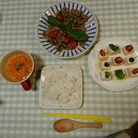 牛肉のやつはバジルが効いてて美味しかったです😋🍴💕ピンチョスは少し形が崩れていますがかわいくできました😃💕スープは野菜の食感が残ってて楽しめるスープでした‼️