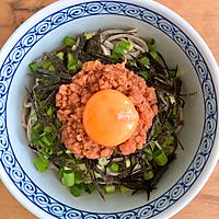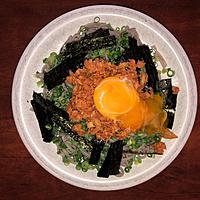 - 4 器に3、1、のり、2の順に盛り付け、卵黄をのせて完成です。よく混ぜてお召し上がりください。