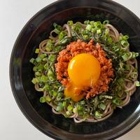 鮭フレークの味付けがちょうど良く蕎麦とよく合います。卵黄がまろやかにしてくれてとても美味しかったです。また作りたいです。