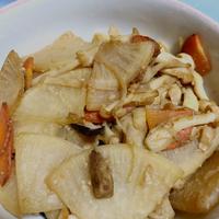 大根は皮はお好みで剥いてください。剥いた皮はきんぴらやお味噌汁の具にお使いください。 きのこは他のきのこでも代用できます。 タレを入れたら焦げ付かないように火加減には注意してください。