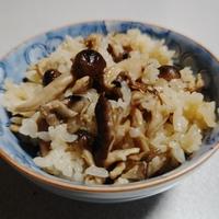 - 準備 三つ葉は根元を切り落とし、1cm幅に切ります。 しめじ、えのきは石づきを切り落としておきます。 米は洗ってザルにあけ、乾燥させておきます。