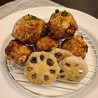 - 4 丸く形を整えたら、全体に片栗粉をまぶし、揚げ焼きにします。
