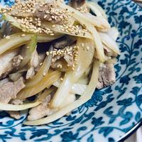 豚バラにタマネギを切るだけなので超簡単。でもレシピどおりだと薄味なので、味見はしっかりと❗️