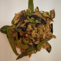 ナスが少なかったのでパプリカを足してみました。色合いも綺麗で美味しかったです。