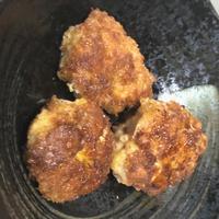 - 5 フライパンの底から4cmの揚げ油を入れ、170℃に熱し、4を全体に火が通るまで5分程揚げます。