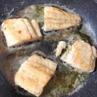 - 3 フライパンを中火で熱し、(A)を入れ、バターが溶けたら2を入れて両面がきつね色になるまで焼きます。