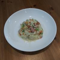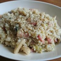 余ったごはんで作れる、簡単アレンジリゾット風ごはんです。 夕ごはんやパーティの時にいかがでしょうか。 ワインなどのお酒にも合うレシピです。 他にもトマトやズッキーニを加えても美味しく頂けます。 お好みでアレンジしてみてください。