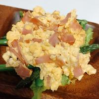 - 6 ベーコンに焼き色が付いたら3を入れて中火のまま、よくかき混ぜながら1分30秒程炒め、半熟状になったら火から下ろします。