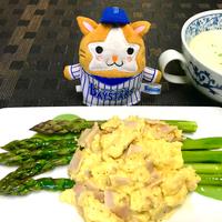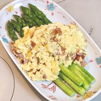 カルボナーラ風ソースがめちゃうま♡♡アスパラだけでなく、新じゃがにも合いそうです!