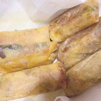 お肉が入っていなくても大満足。たっぷりキャベツととろーりチーズがおいしい、春巻きのレシピです。味付けにはオイスターソースも使い、生姜やニンニクの香りも効いていて本格的な味わいです。キャベツの消費にもオススメのレシピですよ。