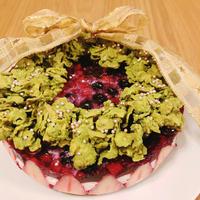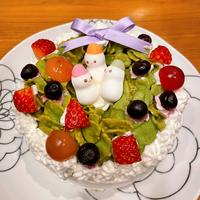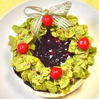 見た目の豪華さとおしゃれさが際立つデザートです。爽やかなヨーグルトの風味が効いたレアチーズケーキは、甘さ控えめで子供からお年寄りまで好評。抹茶を練り込んだホワイトチョコとコーンフレークで作るクリスマスリースがアクセントに。サイドには苺を飾り、上にはベリージュレをのせることで、まるでお店のケーキのような華やかな仕上がりに。手間はかかりますが、特別な日にぴったりの一品です。