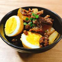 - 5 4に、(A)の調味料を入れて、大根と茹で卵を入れて蓋をして20分程煮込みます。