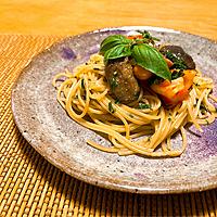 - 6 器に盛り、バジルをかけて完成です。
