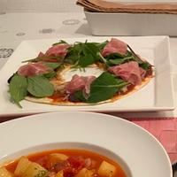 ピザ生地もソースも手作りしました。生ハムのせるの忘れました(笑)トマトを加えました。リボン飾りを作るのが楽しかったです。