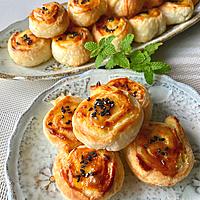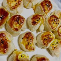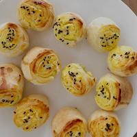 さつまいものペーストをパイシートで巻いた可愛いデザートです。パイシートを使っているので、とても簡単に作れます。黒ごまが香ばしくて、とても美味しいです。おやつにぴったりですよ。是非、一度試してみてください。