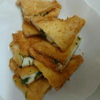 揚げ油の温度が高いと、チーズが溶け出し、はねる場合がありますので、高温でサッと揚げて下さい。大葉の量はお好みで調整してください。