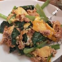 もう一品欲しい時にささっと作れて便利な、小松菜と鶏ひき肉の炒め物レシピです。オイスターソースの甘辛い味がクセになりますよ。とろとろの半熟卵が全体をマイルドに仕上げてくれます。