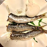 イワシ丸ごと、クッキングペーパーで蒸し焼きにしました。
