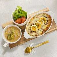 調味料の加減は、お好みで調整してください。 牛乳は、沸騰させると分離する可能性がありますので、火加減にご注意ください。 ご使用の電子レンジの機種や耐熱容器の種類、食材の状態により加熱具合に誤差が生じます。様子を確認しながら、必要に応じて加熱時間を調整し加熱してください。
