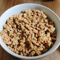 肉300g、卵3つ、牛乳なしで作ってたら、ひっくり返す時ばらばらになってしまったのでそぼろにして、ケチャップとウスターソースを混ぜこんで、ご飯にかけて食べました。おいしかったです❤