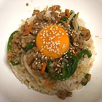- 4 器にごはん、3をのせ、卵黄、白いりごまをトッピングして完成です。