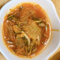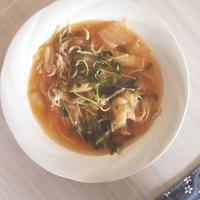 キムチと豆苗の簡単コンソメスープ レシピ・作り方