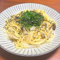 今回は1.6mmのスパゲティを使用しました。バターの代わりにごま油でも美味しく出来ます。大葉と一緒にのりを入れても美味しいですよ。