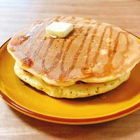 いつものホットケーキにプロセスチーズとコーンを入れてアレンジしました。チーズとメープルシロップの甘じょっぱい組み合わせがくせになるおいしさですよ。簡単に作れて、朝食やおやつにぴったりなので、ぜひお試しくださいね。