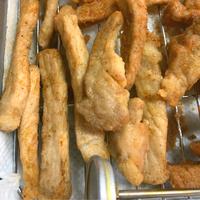 揚げ時間は、パチパチいってきたらすぐ上げました。衣をもちょっと強めにつけても良かったかもなあ
