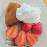 生クリームとイチゴでなんとか食べたけど、あまり甘くないし、生地はかたいし、おいしくはない。リピートなし。もっとあまくて、ふわりとしたのが良かった。