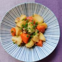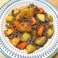 中はホクホク外はカリっと仕上げたじゃがいもとにんじんを、豚ひき肉と合わせて甘辛く仕上げた炒め物です。生姜の効いた甘辛い味付けが白いご飯ともよく合い、美味しくお召し上がりいただけます!レンコンやタケノコなど、お好みの根菜で代用するとアレンジが広がります。