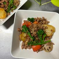 ゴロっと根菜の甘辛ひき肉炒め レシピ・作り方